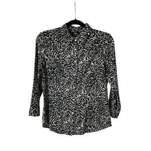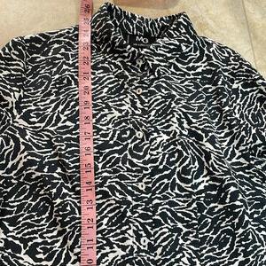 MG Silk Collection Shirt Casual Animal Print Button Down Blouse Black Size M