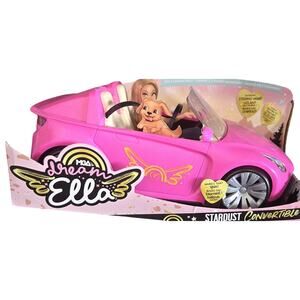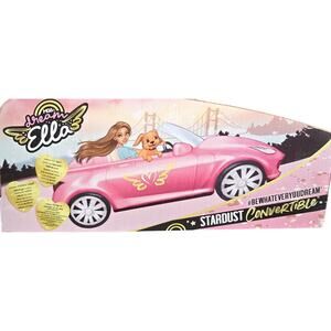 Get ready for some stylish fun with MGA's Dream Ella Stardust Convertible! This adorable pink sports car is the perfect ride for your 11.5" fashion dolls. It comfortably fits two dolls, so Dream Ella and her friends can cruise around in style.