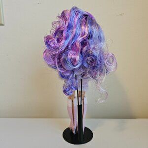 Pre-owned MGA Entertainment Rainbow High Winter Break Violet Willow fashion doll. Measures approx. 10.5" tall. Comes with original clothing pieces shown. She is missing her shimmery crop top and one earring for her earmuffs. Doll is in good pre-owned condition. Shows light signs of prior play. She still has very stiff and messy hair from all of the gel MGA put in during manufacturing. The quilted style skirt she is wearing is also VERY tight on her, I cannot get it to fasten in the back.