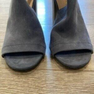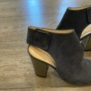 M.GEMI Suede Contemporary Boho Designer Leather Metallic Block Heel Shootie Classic Peep Toe