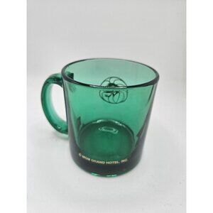 MGM Grand Hotel Green Glass Mug Made in USA 12 ounces. 3 3/4" height and 3 1/2" wide on base. Visible Seams on the sides. No chips or cracks.