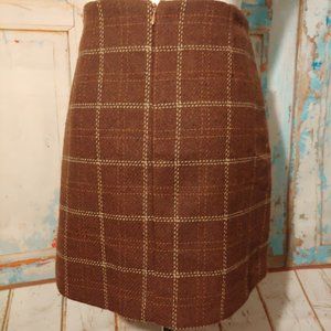 MGM plaid lined zipper wool texture skirt w snap grommet/size M/brown cream