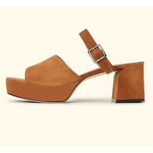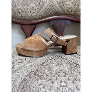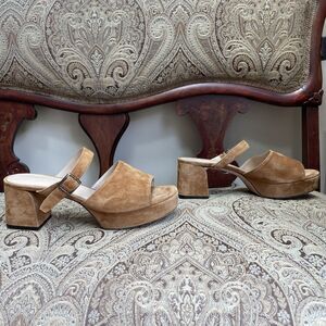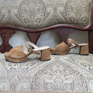 Made in Italy. Light fawn brown suede. Block heel. Platform sandals.