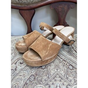 M.Gemi Bella Sandals Brown Italian Suede Leather Block Heel Platform Size 9