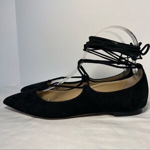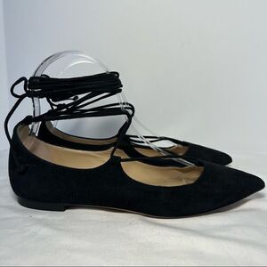 M. Gemi Brezza Black Ballerina Lace Up Suede Point Toe Flats 36/6
