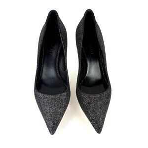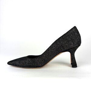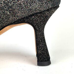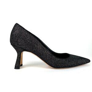 Elevate any ensemble with these stunning M.Gemi Rimini Sparkle Pumps, handcrafted in Italy and finished in a dazzling black glitter fabric. Featuring a chic pointed toe and an elegant sculpted heel, these pumps offer a perfect blend of drama and sophistication for evening events or special occasions. heels are 3 inches