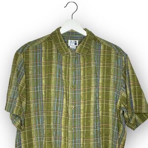 MI Modern Images Green Plaid Silk Blend Short Sleeve Button Up Men’s Size Large