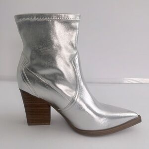MIA $80 Women Rachell Block Stacked Heel Western Bootie Silver Shoes Size 8 NWOT
