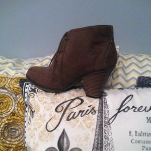 Cute, tan suede booties!!! Only worn once. Look brand new!!!
