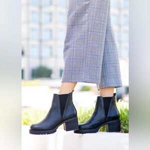 The Jody bootie from Mia flaunts the perfect mix of feminine and moto style. Dual elastic panels lend a just-right fit and the thick lug sole feels tough and durable. * Faux leather upper * Pull-on with dual elastic gores * Round toe * Fabric lining * Lightly padded footbed Approximate measurements: * ¾" platform, 2¾" stacked block heel New in box Women’s size 9