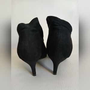 MIA Black Heeled Ankle Shoe Boots Sz7M Kitten Heel Pointed Toe Faux Suede