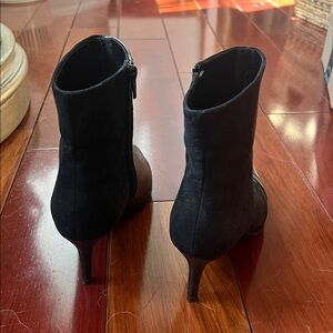 Stylish black ankle boots with a pointed toe and sleek design. Perfect for any occasion. Lightly worn.