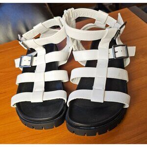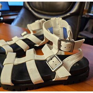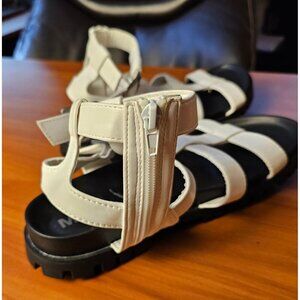 MIA Black & White 2 Level Buckle Sandals with Side Zipper Size 8.5