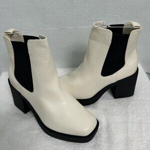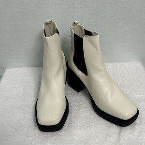MIA Block Heel Pull on Tab Faux leather Lug Sole Chelsea Boot -Off White-11