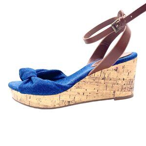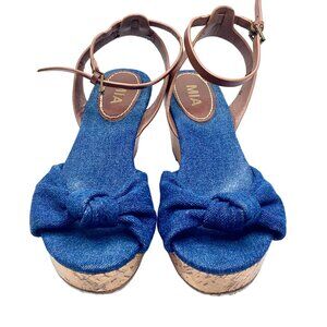 MIA Blue Denim Knot Espadrille Wedge Sandals Cork Size 8.5 Open Toe