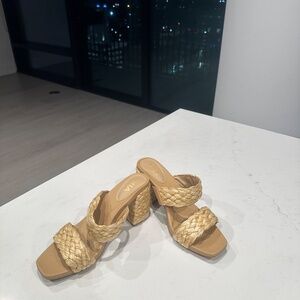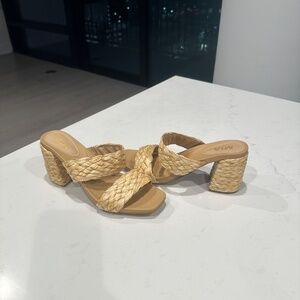 MIA Braided Raffia Block Heel Sandals – Natural Tan Size 8.5