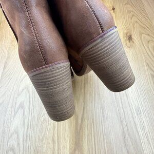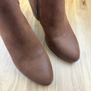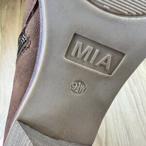 MIA Brown Block Heel Ankle Booties Size 9.5 Wide Round Toe Zipper Faux Leather