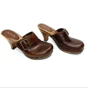 MIA Brown Leather Wooden Heel Mule Clogs Size 7