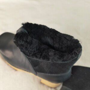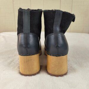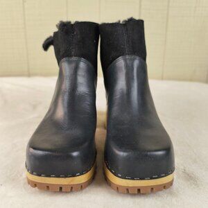 MIA CLOGS Bootie Ankle Boot Black Shearling Lined Square Toe