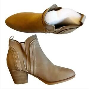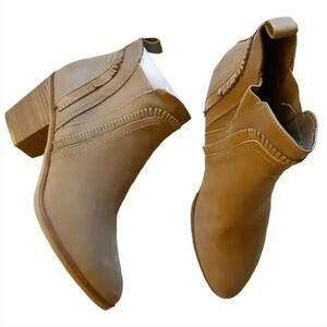 MIA Carrol Ruffle Boot 6 Tan Taupe NWOT Western Boho Heel Ankle Bootie Fringe
