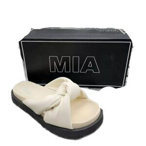 Step into style and comfort with the MIA Chunky Sandal With Knot Slide On Sandal. These sandals feature a trendy knot design and a chunky sole that adds both height and stability. Perfect for casual outings or dressing up a summer outfit, these slide-on sandals are a versatile addition to your footwear collection. Made with high-quality materials, they ensure durability and long-lasting wear. Whether you're headed to the beach, a picnic, or a casual brunch, these sandals will keep you looking chic and feeling comfortable all day long.