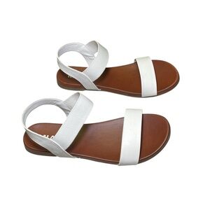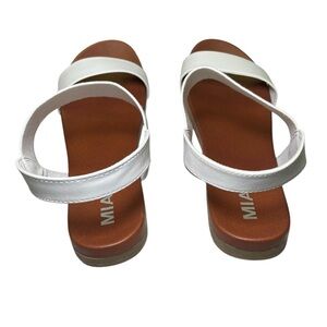 Keywords: MIA sandals, white summer shoes, elastic ankle strap, women's size 9.5, flat sandals, vacation shoes, beach sandals