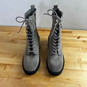 MIA Combat Boots Gordy Grey Lace Up Block Heel Ankle Side Zip Size 7.5 M