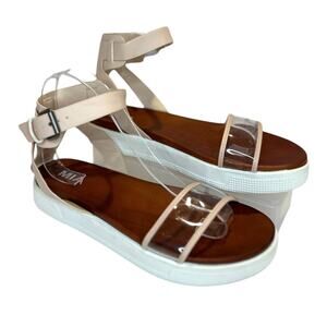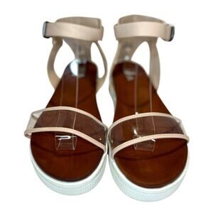 MIA Ellen Clear Toe Strap Blush Ankle Strap White Sole Sandals Womens Size 7.5M