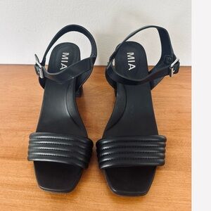 The perfect height for day to night. Crafted from MIA’ vegan leather, this shoe is a spring/summer staple. Featuring an adjustable ankle strap and quilted upper, finished on a contoured footbed for all-day wear. Square toe. Textured vamp strap. Adjustable buckle strap closure. Block heel. 3.2" heel.