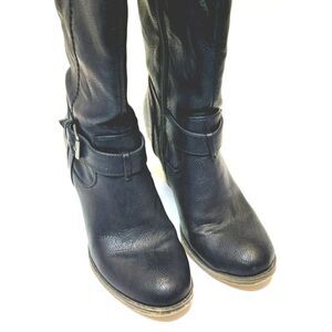 MIA Farley Over The Knee Heeled Boots Solid Black Buckle Accent Side Zip Sz 6.5