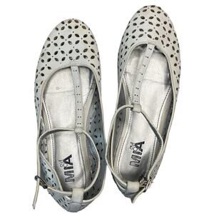 MIA Girl perforated white silver rhinestone buckle ballet flats mary jane size 4