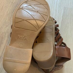 Girl MIA chic brown strappy sandals. Perfect for any occasion, they offer both comfort and elegance.