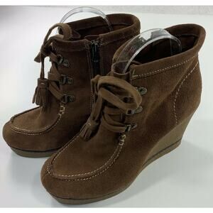 MIA Hazel Boot Brown Suede Leather Tassle Lace Up Wedge Bootie Size 7.5 M