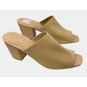 MIA Hilary Block Heel Slip On Mule Tan Sz. 10 Stretchy Comfortable