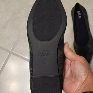 MIA Kerri Camo Pointed Flats- Size 6.5 (NEW). These shoes come in their original box and have never been worn. They have a memory foam type insole for comfort. They are super cute dressed up or with jeans!