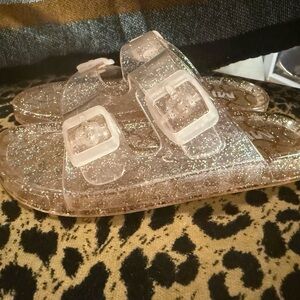 Sparkly glitter sandals with adjustable straps. Perfect for playful days.