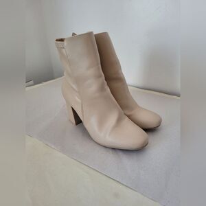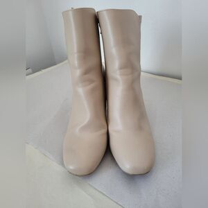 Super cute mid calf shaft boots with an inner zip closure and Chunky block heel. Nude beige color. Vegan leather. Excellent condition. 3 inch heel. US Size 10.