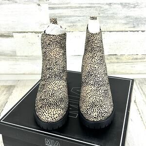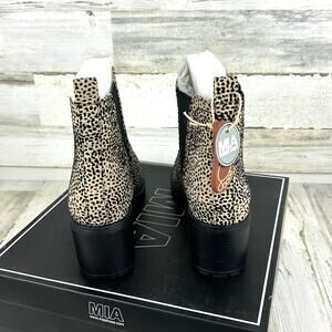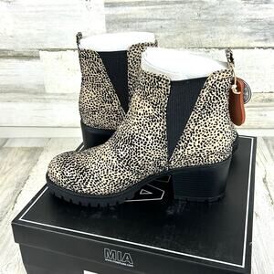 MIA Laren Women’s 8.5 Leopard Print Faux Leather Ankle Boots Block Heel NEW