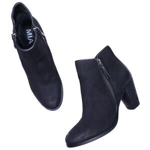 MIA Maddock Ankle Bootie Black Leather Stacked Heeled Side Zip Women's 6