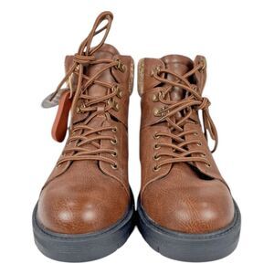 MIA Marsha Lug Hiking Boots Brown Vegan Leather Lace Up Textile Cuff 9