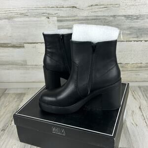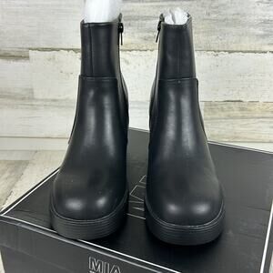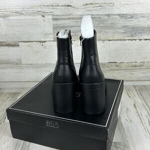NWB MIA McKenna womens sz 7.5M black faux leather platform ankle boots, new with box