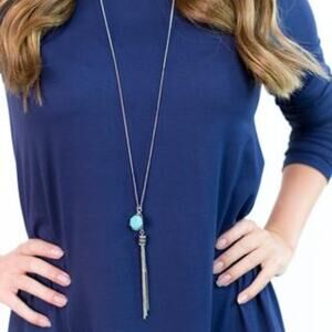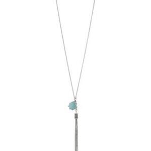 MIA Mickie Stone Chain Tassel Necklace Blue Silver