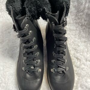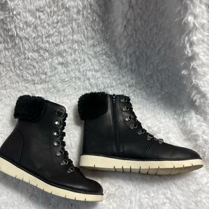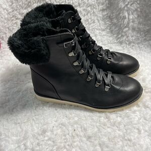 MIA Mikaila hiker inspired black lace up boots with soft faux fur accent SZ9.5