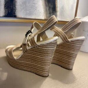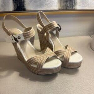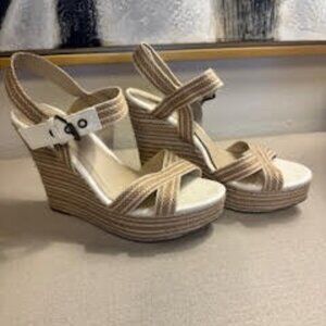 MIA NATURAL ROPE PLATFORM ESPADRILLE SANDALS, TAN/WHITE, SIZE 9.5