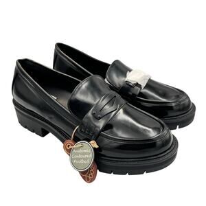 MIA NWOB Nelcy Black Vegan Faux Leather Slip On Chunky Heel Penny Loafers