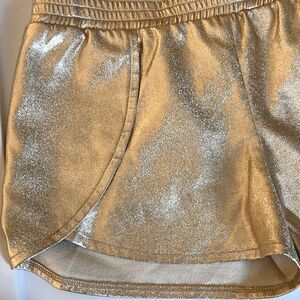 MIA New York NWOT girls rose gold metallic shorts with elastic waist, scallop front detail and soft lining. Size large.