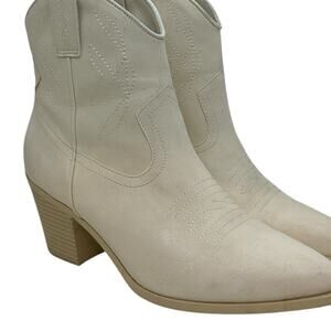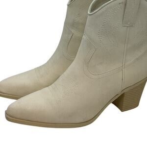MIA Sawyer Embroidered Pointed Toe Cowboy Booties Women's Beige Sz 8