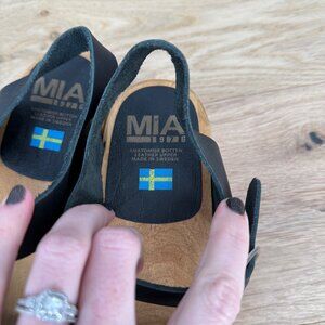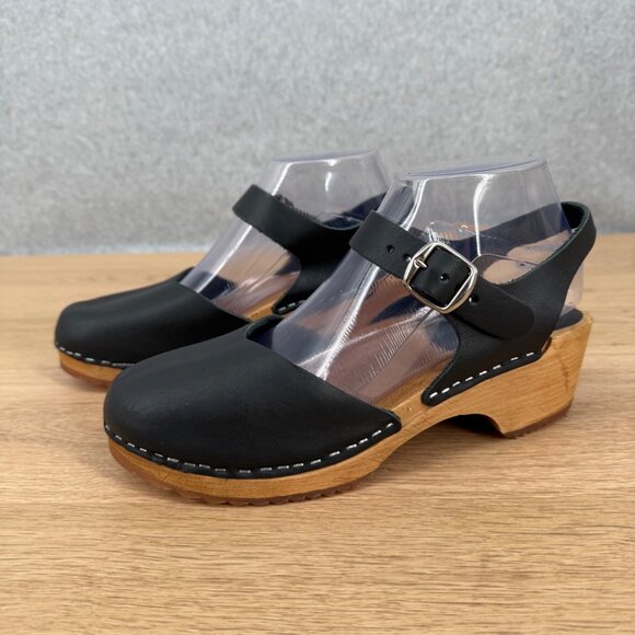 MIA Sofia Leather Wooden Block Heel Clog Shoe Size EU 39/US 8.5-9 Black Swedish