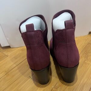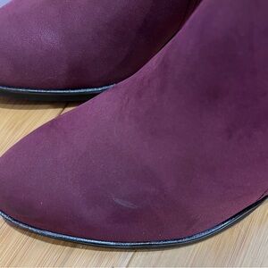 Step out in style with these chic burgundy ankle boots. Perfect for any occasion, these boots offer both comfort and elegance. Very gently used with a few scuffs as pictured.