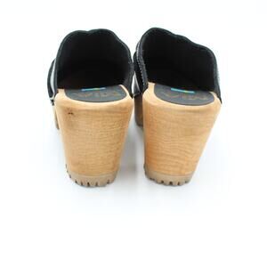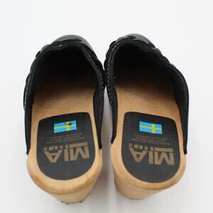 MIA Swedish Clogs 37 Womens 7 Black Leather Braided Wooden Heel Comfort Shoe